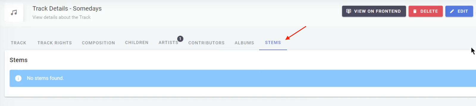 Firstly, navigate to the Synchtank Admin and find the Master / Track you would like to generate a stem from and head to the stems section.