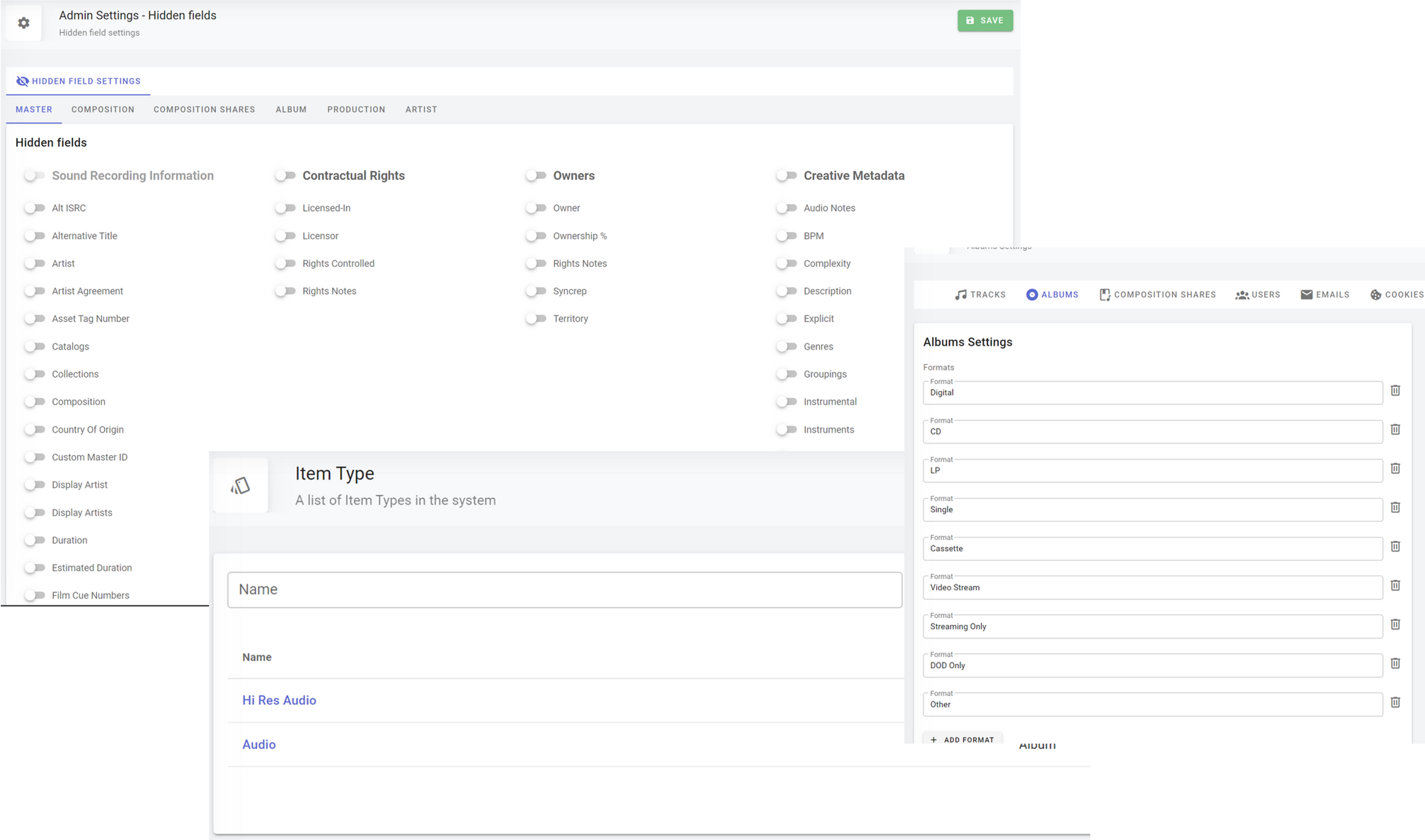 Configure your Admin system through Hidden Field selection, Album Settings, Item Types, and more!