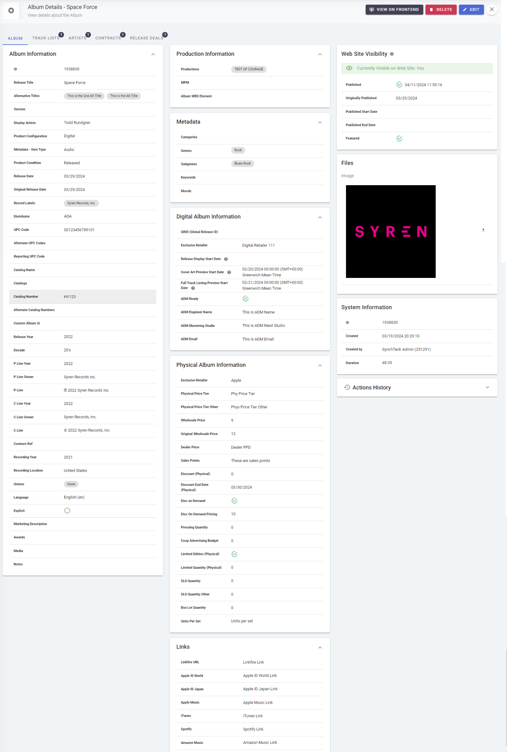 - Physical Album Information