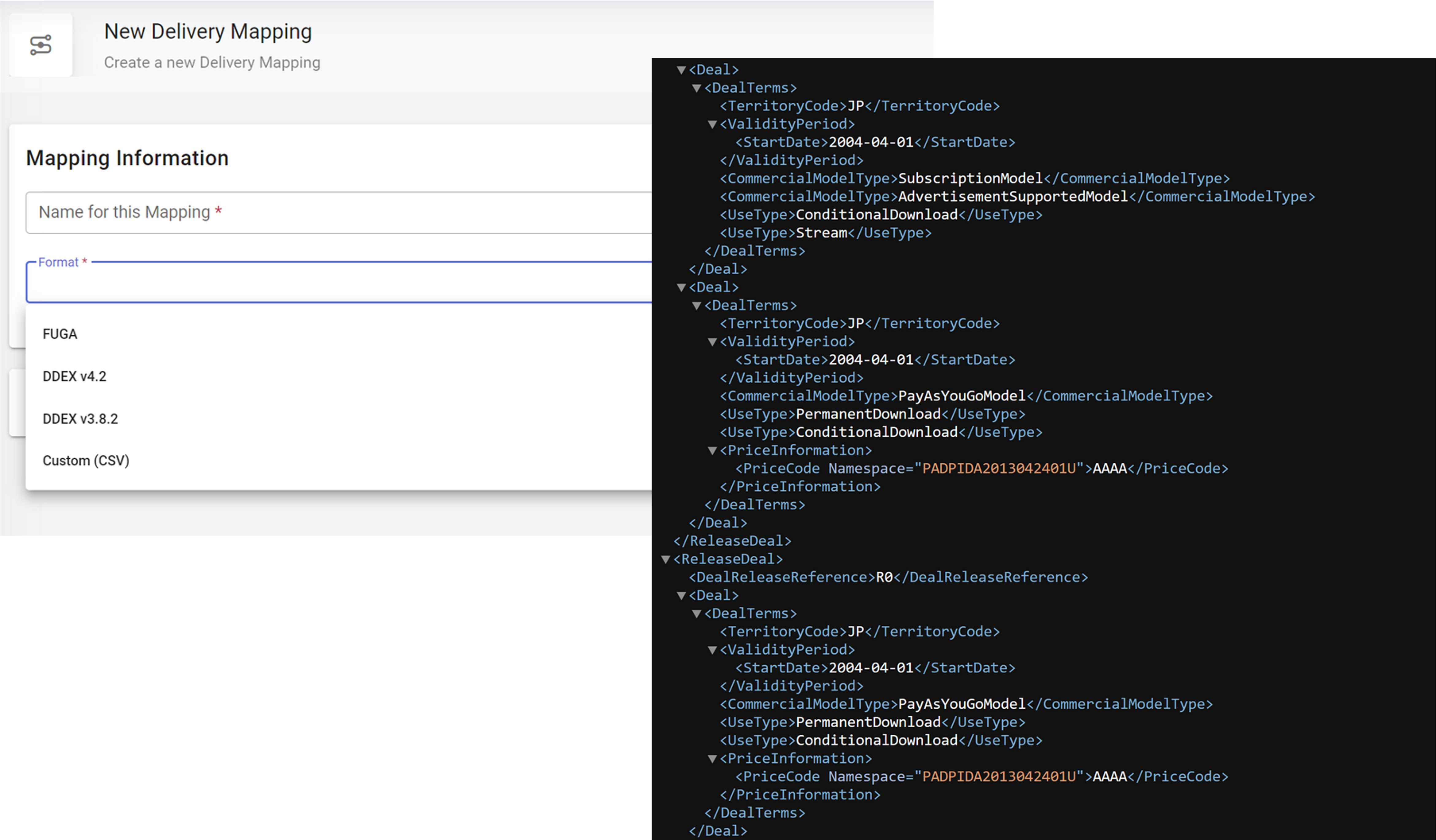Your Delivery Module now comes with DDEX v. 3.8.2 and DDEX 4.2 mappings, complete with Release Deals from your system included in the output!