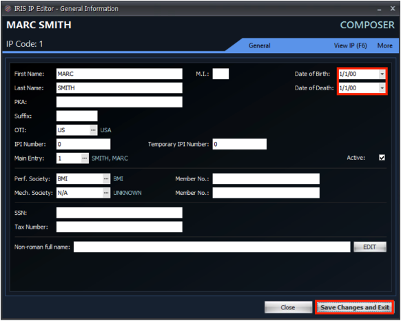 - Open a song overlay with the IP you need to add a Date of Birth or Death to.
