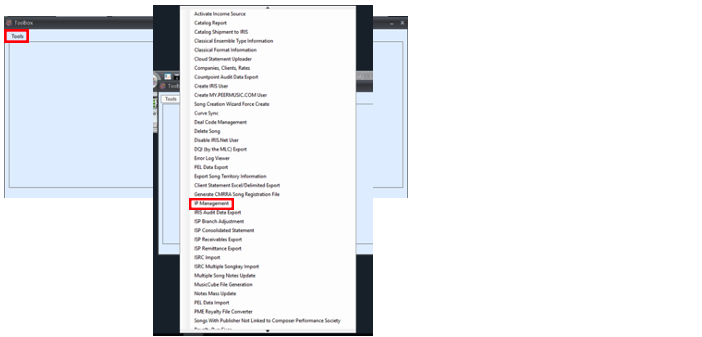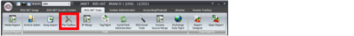 - To Edit a previously created composer or publisher, open TOOLBOX on the Tools tab of the IRIS ribbon.