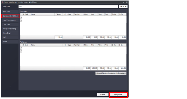 - Then click Composer & Publisher, you can now edit the fields you wish to change then click Apply Data.