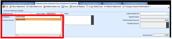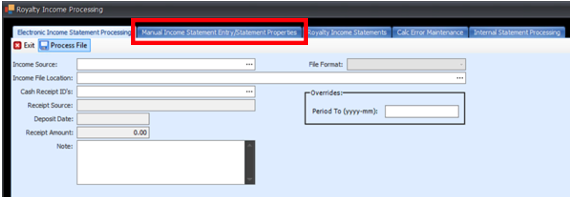 - Click the second tab, Manual Income Statement Entry/Statement Properties.