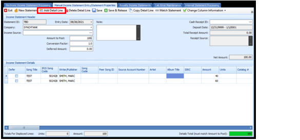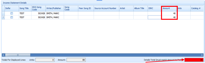 - You must enter the individual Amount To Post for each song to the Amount column.