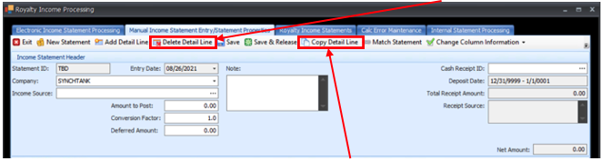 - To Copy a Detail Line, select the line to copy and click Copy Detail Line.