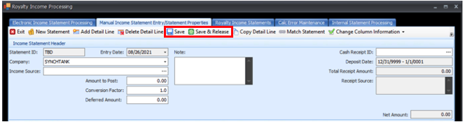 - When you have finished entering the information, click Save to save the statement or click Save & Release to save the statement and release it to Royalty Runs.