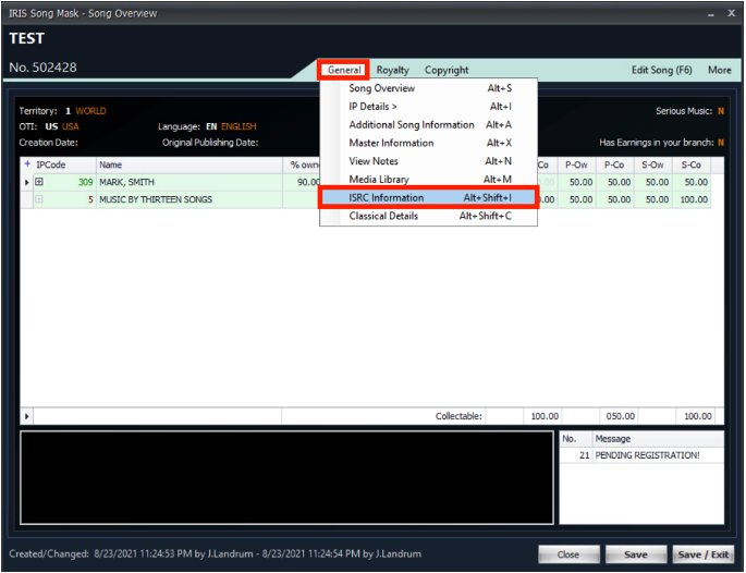 There are two ways to add ISRC codes to songs in IRIS. You can manually add them or upload and match a file containing multiple codes and songs.
