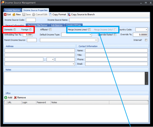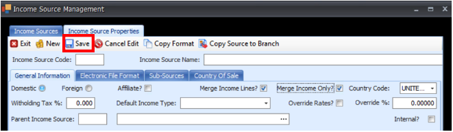 - Once a Code and Name has been assigned you must select if the New Income Source is Domestic or Foreign, see red box below.