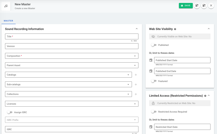 • Selected Sound Recording Information - where you can input metadata for the individual master selected on the left hand side