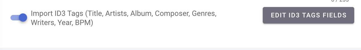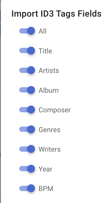 1. You can choose to import ID3 tags embedded in your MP3s by selecting the ‘Import ID3 Tags’ toggle. You can then select which ID3 tags you wish to import.