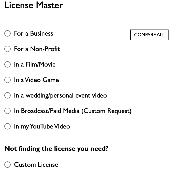 A la Carte Licensing (sometimes called single track licensing or micro licensing) allows you to purchase licenses for a track.