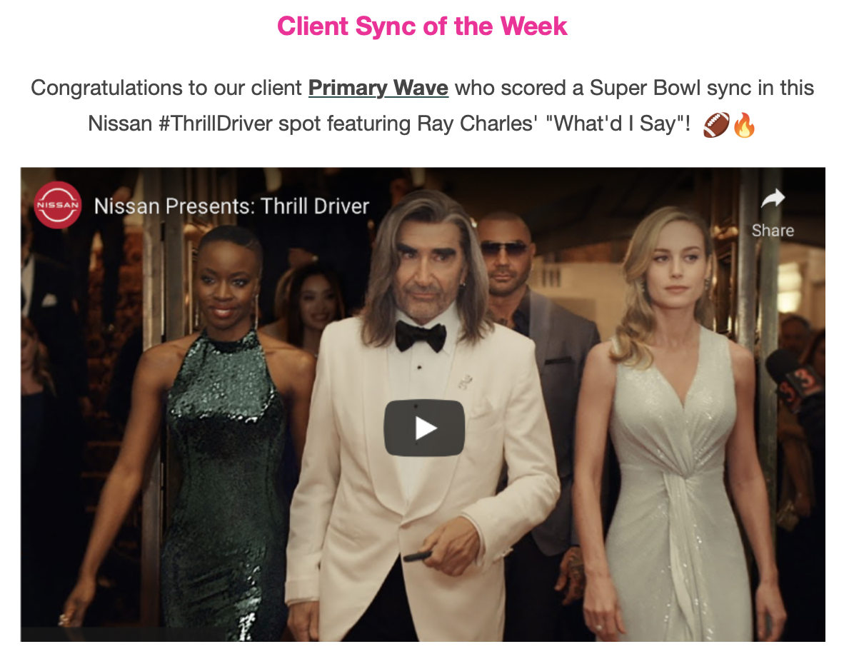 Each week we also choose a ‘Client Sync of the Week’ to be featured in our Synchtank Weekly Newsletter which goes out to over 8,000 industry subscribers. For more information, please contact emma@synchtank.net.