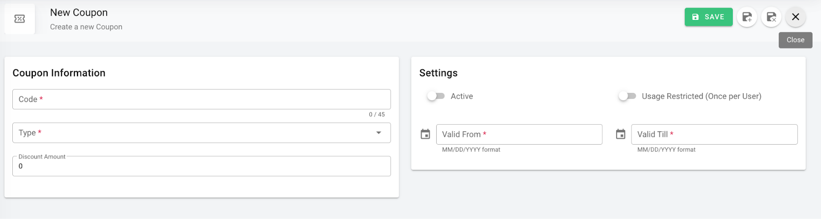 You also have the ability to set up Discount Coupons for your users to receive a discount of your choosing. This can be set up in Admin under “Coupons”.